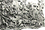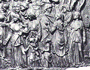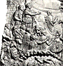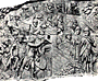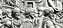 Four Dacian families at a party or meeting. The artist skilfully insists on the Dacian manners and costumes which seem more sophisticated than the conquerors' (the Romans') who (are made to) look, in