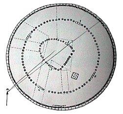 Se pare ca a fost construit mai tirziu. Este format din 3 cercuri concentrice si o potcoava in centru. Primul cerc, cel exterior, este format din 104 blocuri de andezit, reprezentind numarul zilelor de post dintr-un an (miercurile si vinerile), 52 de saptamini x 2 =104. Al doilea cerc, mijlociu, aproape lipit de cel exterior este format din 180 de stilpi subtiri in grupuri de cite 6. Al treilea cerc, cel interior, contine 84 de stilpi de lemn:104+180+84=365+3=368 Potcoava din mijlocul marelui calendar este alcatuita din 34 de stilpi de lemn. Este prevazuta cu 2 praguri asezati unul in fata celeilalt chiar la baza potcoavei, despartind stilpii in doua grupuri de 21 si, respectiv 13. Grupul de 13 este orientat spre vatra sacra. S-au facut tot felul de speculatii asupra interpretarii acestora:numarul 13 ar fi in legatura cu revenirea Craciunului (ziua nasterii celor doi Zamolxes),in aceeasi zi ca in calendarul lui Decaineus. In complexul Astronomic de la Sarmi-seget-usa mai exista si alte aliniamente:unul comun, din 4 siruri de cite 15 discuri de calcar, reprezentind zilele din Postul Pastelui dacic; altul care reprezinta zilele de post:4 siruri de cite 10 postamente de andezit (4x10=40), zilele din postul Craciunului. -Nu vi se pare ciudat ca luna decembrie, cu inteles de dece, zece este azi a 12 luna a anului? -Ei , la asta nu m-am gindit! -Si ce este asa de important in asta? -Dar ca luna octombrie, a 10-a, are numele provenit de la octo, 8 ! -Mai, mai! -Dar septembrie, a 9-a luna din calendar , are radacina septe, 7 ? -Deci ar insemna ca cineva a folosit gresit numele lunilor anului, ori ca anul la daci avea numai 10 lui ! Adica incepea, cu prima luna in luna…martie ! -Dar despre saptamina, ce ne potI spune? Saptamina avea, de asemenea, 7 zile: 1.AVLATA : « Aflata « , "Deplina" dupa un alt nume al Zeitei Mame, Mama Florilor de Mar, Marian, Maria, ori Vrelam (Domnita Fecioara). 2.AMALTHEIA : "Cea care creste (ingrasa) zeii si era inchinata mamei adoptive a celor doi Zalmoxes lui Brito-Lagis, "Divina Lupoaica". Chiar lui Zalmoxes, pentru ca a fost crescut de lupoaica, i se mai spunea APOLLO - LUKIOS. 3. MERGURIUS : "inainte-mergatorul" era si ziua lui Orfeu, zi de post, ziua cind a fost omorit. 4. ZIAIS : "Luminoara" - era ziua inchinata surorii gemene a lui Zamolxes - Aplu (Apollo) - era ziua roscatei Arthemis. 5. BENNAR : "Jertfa" ori Jerfitorul, zi de post dedicata deasemenea lui Apolo. 6. SAB-A-DIOS (Casa Domnului – zeului) in cinstea celor doi parinti adoptivi ai celor doi gemeni (Zalmoxes- Blondul Aplu si Roscata Artemis):pastorul Aise Pos si sotia acestuia Brito-Lagis. Alt nume pentru ziua a sasea mai era Sambatis, "purificarea" inchinata numai tatalui adoptiv, pastorul Aisepos. 7. In fine, cea de a saptea zi, DOMENICA - Schimbarea Vremii, ori Marea Purificare, era inchinata "Tatalui Ceresc" – Tato Nipal. Astfel, Diodorus a fost corect informat ca Hyperboreenii au construit un observator astronomic. Pentru ce acest popor antic si-a dedicat timpul si energia lui in realizarea a ceea ce se pare a fi o "afacere nerentabila"? Ei au folosit mijloacele de transport herculiene pentru a cara bucati de andezit de la zeci si zeci de kilometri distanta pina la Sarmisegetusa? Acestea cintaresc … tone o bucata. Ei le-au carat traversind ape si munti… ce mai calatorie!…Fezabilitatea acestui traseu nu a fost niciodata calculata.