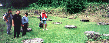 puternic influentata de civilizatia Minon. Numita dupa locul unde a fost descrisa prima data, desi termenul e fost folosit mult mai extins. La Sarmisegetusa am vazut si ce nu trebuia vazut. Ne-am dus la o cabana a "arheologilor", o cabana de lemn pusa pe pietrele care au fost smulse din zidul de la Sarmisegetusa…vandali, dezastru. Pe drum am mai cumparat si niste afine, de la o taranca, care vroia sa ne vinda orice, numai galetusa in care culegea afinele nu. Am mincat afinele nespalate, asta e nimic, pentru ca le-am mincat amestecate si cu frunze, si pentru dezinfectare le-am spalat cu vodca. Personal, la ulcerul pe care il am, m-am asteptat la mari neplaceri. Minune mare, nu am avut nimic!…de, eram in Tara Zeilor! Pe drumul de intoarcere am fost plouati, plouati, plouati. Ce ma framinta pe drumul de intoarcere de la Sarmisegetusa sunt doua lucruri:o bucata de piatra care are zimti, ca o roata dintata, sapati in ea, si un jgheab mare, de 2-3 picioare latime si inaltime de 2-3 picioare, perfect sapat in piatra. Joi 9 Iulie , dimineata, ne-am dus la Geoagiu Bai ca sa vedem baile lui Decebal. Azi dimineata, Dan a trebuit sa plece rapid, a fost chemat la Bucuresti de un client…nu este usor sa fii si avocat. Suntem la Germisara , o cetate dacica unde erau bai pe timpul lui Decebal si Burebista, si care mai exista si acum, sub numele de Geoagiu Bai. Ziua este foarte frumoasa, putin racoroasa, insorita, aerul este curat dupa o mica ploicica din seara precedenta. Am intrat intr-o pestera care are inauntru aspect de turn de biserica gotica. Pe unul din ziduri descopar o placa de 75 x 50 cm, de o forma ciudata, "in picatura", care aparent blocheaza o intrare. Mai vedem niste cruci, niste litere pe zid, un fel de scris ciudat pe care ma caznesc sa-l fotografiez. Andrei la fel. Mai gasim sI un bolovan, cit o usa, de 1,80m x 1,60m care blocheaza o alta intrare. Acesti bolovani au marginile parca topite cu lasserul, sigilind perfect locul. Natura sa le fi asezat asa de perfect ?! Intrarea principala in pestera are o latime de 2 m si o inaltime de 1,50m . Intrarea pare a fi cimentata…bolta e sus…iar acum Andrei, spectrofizician de profesie, ia o bucata din cimentul asta si spune: -"daca acest mortar este modern are calciu, daca nu e modern si este de la daci, nu are calciu. Asa, numai pe vazute este un mortar dacic dupa consistenta, dar eu o sa-i fac analiza chimica, acasa, la Chisinau". - Fereastra care am vazut ca dadea acolo, astupata, este exact pe directia nord-sud, spune Andrei, care nu se desparte niciodata de busola sa militara. Am ajuns sI la "Baile lui Decebal", unde, dupa cum spune lumea, este o crima ce se face aici…Baia care-i poarta numele si care este veche de mii de ani, mai frumoasa decit orice alta baie din lume, si in care roci cristalizate se intrec in a o decora, azi este nimic alceva decit o…groapa de gunoi! Trebuie sa vezi acest loc ca sa intelegi ce grandios arata. El imi aminteste de desenele animate cu Fred Flinstone din Bedrock. -Spre apus de soare este locul prin care o sa intram, se vede acolo. Aceasta intrare este solstitiala, indica vestul. Regele se spala, apa curgea de sus si apoi era si apa care tisneste din izvoare subterane si care ii revitaliza corpul, plus piatra cu cristale care revitaliza organismul. Dar ea nu raminea aici, se ducea afara, la apus de soare, se ducea in noapte…. - Bazinul asta cit de mare este?, intreb. - Asta este cu apa sulfurica, completeaza Costel, care neavind ce face cu degetele si le-a vinturat prin apa, mirosindu-le apoi, nu cu prea mare placere. - Bazinul aici are 4,50 si acolo trebuie sa aiba 7 sau 8 m. Are forma de ou. - Inauntru, pe marginea zidului, sunt niste banci, sapate in piatra, pe care m-am asezat si eu gindindu-ma la cei ce au facut la fel ca mine cu sute si mii de ani in urma. - La ce s-o fi gindit El, Decebal, cind s-a imbaiat aici ultima oara? Pe cine a avut in jurul sau? -Se mindresc grecii cu trei baite, vechi de numai citeva sute de ani. Se mindresc italienii cu altele si mai noi…numai noi le transformam pe ale noastre in cosuri de gunoi! Si stiti de ce? Pentru ca mindria nationala ne-a fost furata, odata cu istoria. Noi am aparut ca popor romin in 1859, dupa unificarea celor doua principate:Tara Vlahilor si Moldova. Nimeni nu vrea sa ne spuna ca de fapt a fost numai o Re-Unificare a doua din provinciile marelui imperiu Dacic. Intre timp, Nicu Mereuta a descoperit urmele unei porti, ca o ecluza. - Nu numai ca este colonel, dar este si arheolog, spune cu zimbetul pe buze, Tudor. Ne-a aratat, cu o fata foarte inteligenta si preocupata de stiinta, o poarta care lasa sau nu sa se scurga apa dintr-o camera in alta. Voi incerca sa va descriu aceasta baie:te urci pe o stinca si vezi ca are un crater, pe fundul caruia este aceasta baie. Ca o rozeta, in jurul buzei craterului, pornesc centrifug, zeci de mici canale, parca lipite de stinca, facute probabil sa dreneze apa de ploaie, ca sa nu se scurga pe fundul craterului. Pe fundul craterului se gaseste un bazin sapat in stinca, de forma unui ou, cu dimensiunile descrise mai inainte. Inauntrul acestei bai se intra printr-un tunel a carui poarta de intrare o puteti vedea in fotografia alaturata. Azi, datorita intemperiilor, mai sunt alte doua locuri de intrare. Cum bine a spus Tudor, zace istorie aici, dar si multa,multa, nepasare. Ceea ce atrage astazi turistii este o cladire in stil rusesc, patrata, acoperita cu var care crapa, geamuri care au fost varuite cindva, ziduri cinva varuite, azi inegrite si murdare , cu un acoperis de tabla, ruginita si scoffilcita, ce inconjoara pe o parte frumoasa baie a lui Decebal, parasita si zvirlita la gunoi. De ce oare sa nu fructificam ceva nou, modern "a la Russe", de ce sa ne uitam la ce a fost vechi, sapat in piatra de strabunii nostri? De ce sa nu ne uitam la lucruri vechi,? Noul, modernul, tabla, caramida, astea ne plac noua! Cu igrasie, murdare, cu muzica ieftina cintata de niste lautari sirbi, cu banci de lemn puse pe 