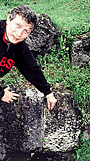 - Ai mai scris tu Andei si despre multe alte cetati dacice ale caror pozitii, unite, formeaza astfel de triunghiuri dreptunghiulare. - Da, am scris, dar acesta este un Triunghi Sacru. - Asta ce mai inseamna?, intreaba Costel. - Asta inseamna ca, cateta opusa unghiului de 30 de grade este egala cu jumatate din ipotenuza. - Asta inseamna, spun eu, ca distanta Racosi - Sona (cateta mica, opusa unghiului de 30 de grade) este jumatate din distanta Racos - virful Omul (ipotenuza Triunghiului Divin). Astfel, algoritmul topografic al dacilor, cuprinde perfect si Sona si Omul si cetatea dacica de la Racosi, si teorema lui Pytagora (inainte chiar ca acesta sa se fi nascut), si cea a lui Thales, si triunghiul de aur al egiptenilor, si…o istorie intreaga care se refuza a ne fi predata chiar de "istoricii nostri"! Si parca nu ar fi de ajuns, daca mergem pe linia Nord-Sud ajungem in Knosos, insula Creta. Parerea mea este ca monumentul acesta de la Sona este mai vechi decit dacii, iar dacii s-au legat de el asa cum s-au legat si de monumentele megalitice din Bucegi. S-au legat prin aceasta cetate de la Racosi. - Andrei, iti spun sincer ca abia astept sa ajung la masina sa iau Atlasul topografic al Rominiei, primit cadou la New York, de la generalul Nicolae Spiroiu, si sa incep sa unesc aceste coordonate. - Miky, eu am facut-o de zeci si zeci de ori, caci nu-mi venea sa-mi cred ochilor nici mie…Mult noroc! In vara anului 1997, Vartic a gasit aici o piatra foarte stranie, interesanta rotunda si le-a aratat fotografiile si celor de la Muzeul din Deva. - Imposibil sa nu fie ceva la mijloc cu acest "pietroi", este prea ciudat. Are o forma ca de ciuperca, alba, comestibila… - Dar si natura este mare maestra, completeaza Andrei. - Asta zic si eu! Poate gasesc pe unul cu buldozerul sa-l bag putin intr-una din piramidele mici. Este mai bun tractorul cu cupa. Intre timp am urcat si pe platforma aceea dreapta, ca o pista de avion. Din departare se apropia un localnic, cam de vreo 55-60 de ani, avind linga el o fetita de 12-13 ani. Ne dam buna ziua si intram in vorba. Aflam ca este intr-adevar un localnic al Sonei si ca-l cheama Folea. - D-le Folea, ce crezi despre aceste movile de pamint? Mai sunt si altele prin imprejurimi? - De, nu stiu daca sunt chiar movile de pamint, dar stiu ca mai sunt si altele pe cimp, mai incolo…trei mai sunt. Dar nu sunt organizate ca astea…Nicaieri nu sunt organizate ca astea. Toti batrinii cu care am discutat asa le-au pomenit. S-or discutat legende, fiecare cum o vrut:ca ar fi fost un urias aici si s-o suit pe munte, pe Fagaras, sarind peste Olt. Si o avut opincile murdare cu glog , ce s-au scuturat lasind aceste nevoi aici. Povesti!…dar daca nu sapa cineva sa vada ce este in mijlocul lor…Aveam un coleg cu care m-am gindit odata sa sapam acolo, in mijloc. - A cui proprietate este asta? - A IGUP-ului. Intreprinderea locala. - Nu poti sa faci asa ceva, oamenii se supara. Numai sa vorbesti cu directorul. - Aici pamintul este impartit, dar ele nu sunt impartite la nimeni. - Ce inseamna IGUP? - Intreprinderea de Gospodarire Locala, dar acum ii zicem RASC (Regia Autonoma de Gospodarie Comunala…). Plecam de la Sona, le spunem "La revedere" guruietilor, poate altii o sa fie mai norocosi ca noi si-or sa aiba imputernicile locale sa sape cel putin un tunel intr-unul din acesti noua guruieti, aceste piramide, sa descopere daca este sau nu ceva acolo.